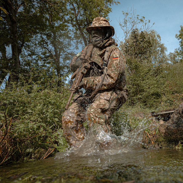 Die Feld- und Kampfbekleidung der Soldaten und Soldatinnen ist aufgrund ihrer modular aufgebauten Konstruktion äußerst flexibel. Dies ermöglicht es, die Bekleidung je nach spezifischer Situation anzupassen und unterschiedlich zu kombinieren, um so in jeder denkbaren Einsatzlage und bei jeder Witterung bestmöglich gerüstet zu sein. Wir konzipieren Wetterschutzartikel in verschiedenen Tarnmustervarianten, mit innovativen Materialien und Funktionen, die optimal an die Bedürfnisse des Trägers angepasst sind.
